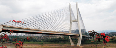 重慶涪陵長江大橋 全長645.11米,主橋長631米,主跨330米,雙塔雙索面PC砼斜拉橋,1997年5月建成通車。獲2000年四川省天府杯金獎。