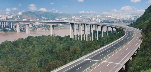 瀘州長江二橋 全長1408米,主跨252米,預(yù)應(yīng)力砼連續(xù)鋼構(gòu)橋,2000年8月建成通車。主跨居同期同類橋梁全國第二,其不對稱壓重式抗撥緢施工屬國內(nèi)首創(chuàng),獲中國公路學(xué)會科學(xué)技術(shù)三等獎。