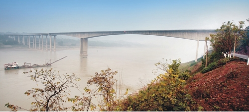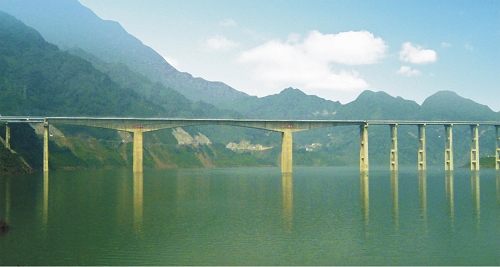 宜(賓)水(富)高速柏溪金沙江大橋 全長1712米,主跨220米,預(yù)應(yīng)力砼連續(xù)鋼構(gòu)橋,2006年11月建成通車。