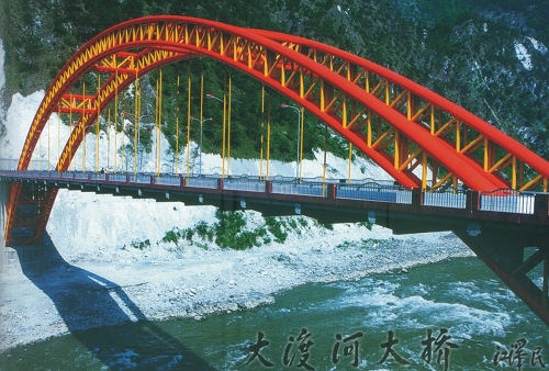 瀘定大渡河大橋 江澤民同志親筆題寫橋名,主跨160米,中承式鋼管砼拱橋,2000年1月建成通車。獲四川省天府杯銀獎。