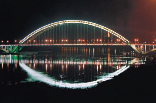 綿陽涪江三橋 全長1375米,主橋長294米,主跨202米,鋼管砼桁架拱橋,1997年10月建成通車。
