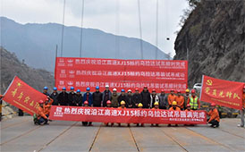 2月28日,在約烏拉達(dá)特大橋金陽岸的試吊平臺上,110t的配重在纜索系統(tǒng)的牽引下,緩緩的提升到預(yù)定高度,并按既定方向移動