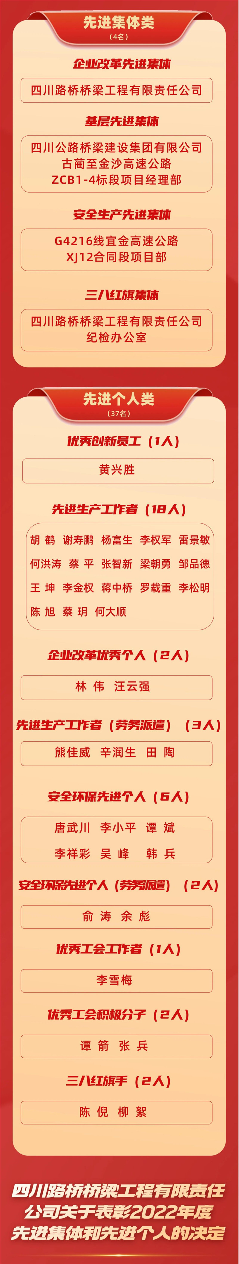 橋梁公司2022年度先進(jìn)集體和先進(jìn)個(gè)人光榮榜
